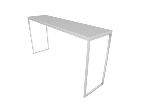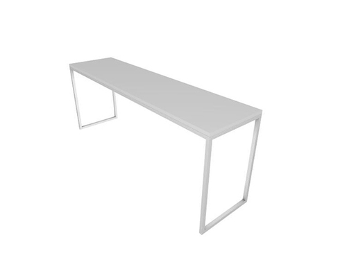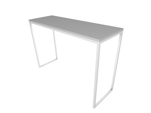 Tavolo con ripiano in vetro effetto fumè e struttura tubolare in metallo verniciato.